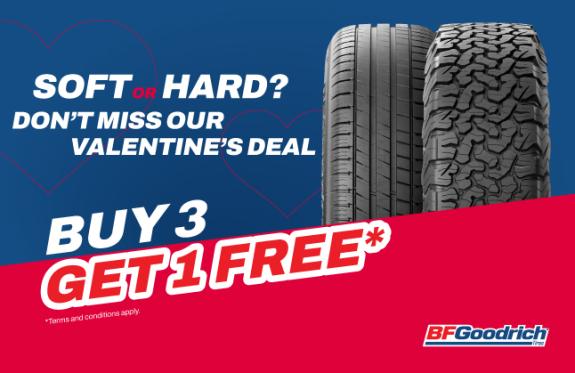 BFGoodrich Valentine's Deal This Valentine’s, choose a tyre that’s made to go the distance. See details
